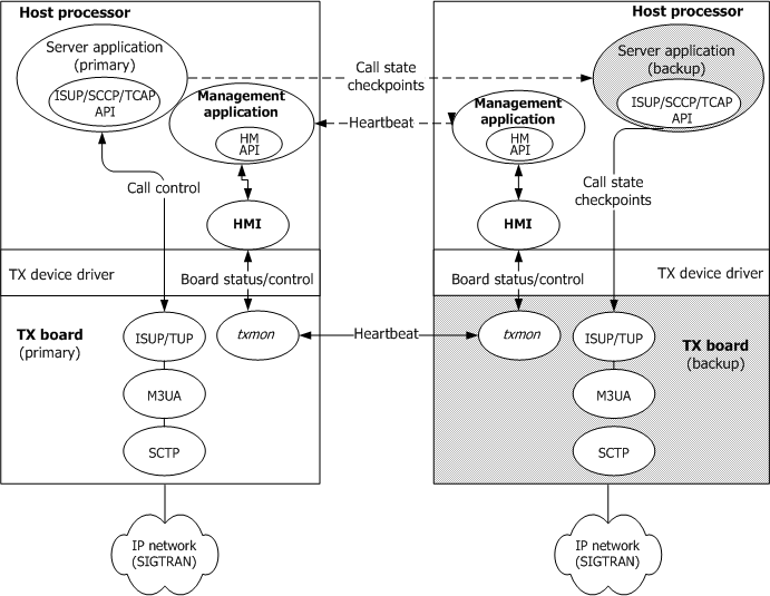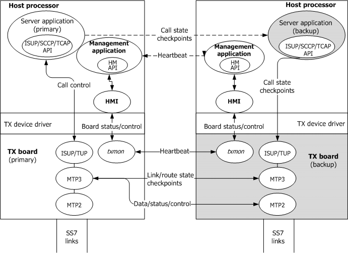 There are no checkpoint or data messages flowing between mate boards. Refer to the Dialogic® NaturalAccess™ SIGTRAN Stack Developer's Reference Manual for more information. |
