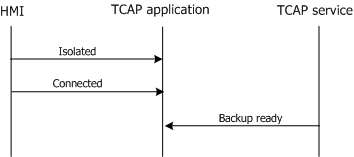 If the backup board becomes isolated from the primary board, it no longer contains a valid set of open transactions. After the backup board is reconnected, it requests an update of the open transactions from the primary board. When this process is complete, a backup ready run state indication is sent to the TCAP application.