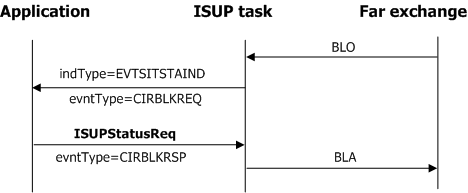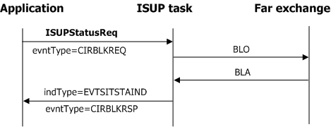 If the far exchange initiates the blocking of the circuit, the application receives a status indication (EVTSITSTAIND) with the event type of CIRBLKREQ from the ISUP layer. The application then acknowledges the circuit blocking by invoking ISUPStatusReq with the event type of CIRBLKRSP.