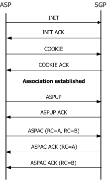 ASP initiates an SCTP association by sending an INIT when the Ethernet port becomes active (which occurs when electrical connectivity is established). |