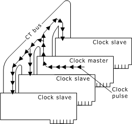 To synchronize data transfer from board to board across the H.100 bus or H.110 bus, boards on the bus must be phase-locked to a high-quality 8 MHz clock and 8 kHz frame pulse. These signals together compose a CT bus clock.