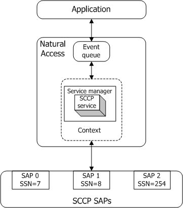 Natural Access organizes services and their associated resources around a processing object known as a context. Each instance of an application binding to an SCCP service access point is a unique Natural Access context. Contexts are created with ctaCreateContext.