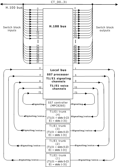 The following illustration shows the switch model for PCI and PCI Express TX boards: