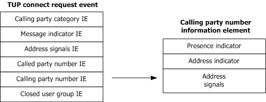 Signaling parameters are passed between the application and the TUP task in the form of events. Events are fixed format structures consisting of one or more information elements (IEs). Information elements are fixed format structures consisting of a flag indicating their presence or absence from the corresponding TUP message, and one or more tokens, or fields.