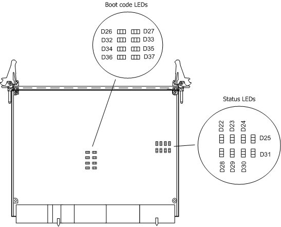 In addition to end bracket LEDs, the following banks of LEDs (D22-D37) located on the solder side of the TX 4000C board indicate the current status of the board:
