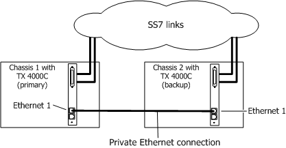 In a redundant configuration, each pair of TX boards is connected through a private Ethernet connection. If other devices are connected to the private Ethernet link, avoid overloading the link. Packets can be lost between the redundant TX boards if the connection is overloaded.
