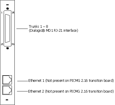 The rear I/O transition board associated with the TX 4000C board has a T1/E1 trunk connector and up to two Ethernet interfaces on the end bracket: