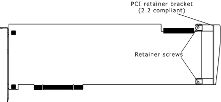 If you are placing the board into a PCI chassis, remove the PCI retainer bracket by unscrewing it from the board. The bracket is not needed for the board to properly fit into the chassis. Refer to the following illustration of the PCI retainer bracket:
