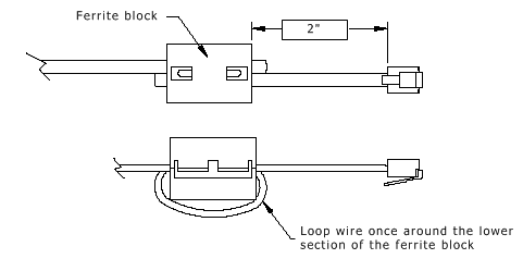 To satisfy the R&TTE regulatory requirements, you must ship, with each of your products, section 2 of the AG 2000 Loop Start and QX 2000 Loop Start Board Compliance Statements sheet that was delivered with your AG 2000 board. In Germany, Greece, and Portugal, your application must be designed so that the AG 2000 board seizes the phone line only with the intention to make a call. Except for EU countries where a line splitter cable is used, the loop start interface can be upgraded from Class A to Class B by installing the loop start class B upgrade (shown in the following illustration) on a standard telephone cable. |