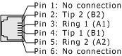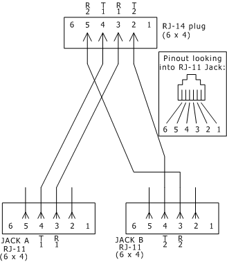 Each RJ-14 connector has the pinouts shown in the following illustration:
