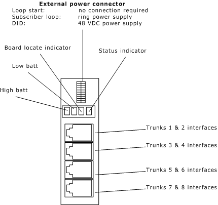As shown in the following illustration, AG 2000 boards have four RJ-14 connectors at the end bracket: