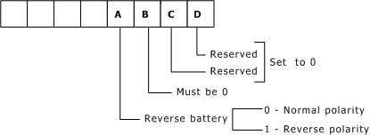 Reverse battery polarity. 0 = Normal polarity, tip positive. 0x08 = Reverse polarity, tip negative. |