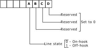 If the A bit is set to 1, the line goes off-hook. If the A bit is set to 0, the line goes on-hook.