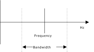 The range of frequencies detected is the center frequency plus or minus one-half of the bandwidth. The following illustration describes the tone detection frequency parameters: