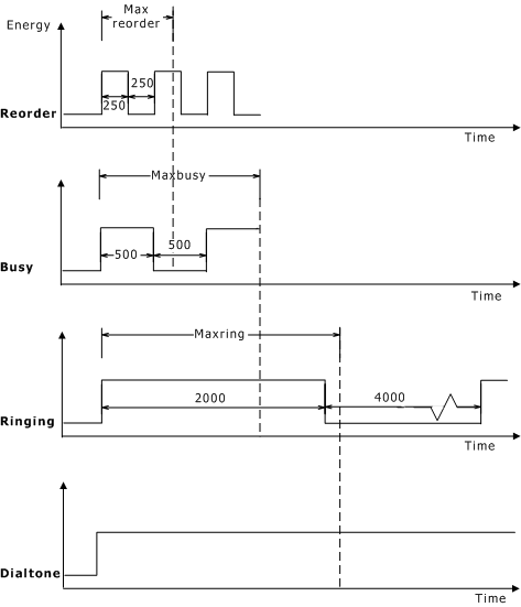 Note: The ADI service presumes that maxreorder is less than maxbusy, and maxbusy is less than maxring. This relationship defines a time tolerance (minimum and maximum) for each of the three tones detected.