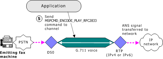 The application sends ANS information to the remote system through an MSPCMD_ENCODE_PLAY_RFC2833 command.