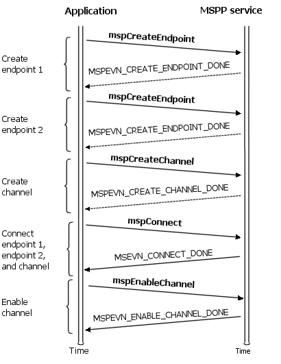 Applications can interrupt a connection either by disabling the channel with mspDisableChannel, or by disabling one of its component connection endpoints with mspDisableEndpoint.