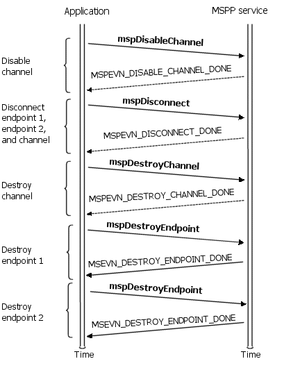 The following illustration shows the function sequence for tearing down MSPP connections: