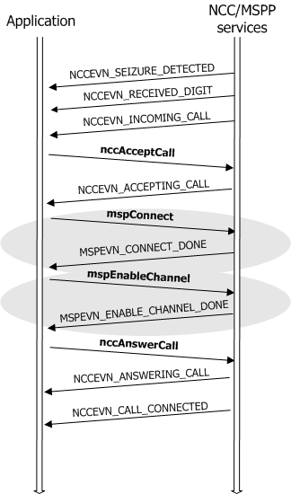 If the gateway at the opposite end of the network successfully places the call, the receiving gateway answers the call with nccAnswerCall and enables the connection with mspEnableChannel.