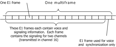 After every 15 frames, an extra frame is sent to synchronize the receiver to the signaling channel. Thus the full cycle contains 16 frames. A group of 16 such frames is called a multiframe. The following illustration shows an E1 multiframe: