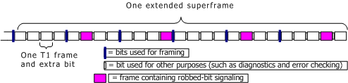 With CAS protocols, bits are robbed from each timeslot in the 6th, 12th, 18th, and 24th frame in the extended superframe. Thus instead of two signaling bits per superframe, ESF has 4 bits, allowing up to 16 separate signaling conditions to be transmitted. The following illustration shows extended superframe:
