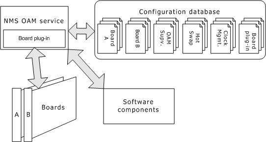 NMS OAM manages and maintains system resources. These resources include hardware components (including CG boards) and low-level board management software modules (such as the Hot Swap process).