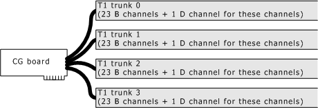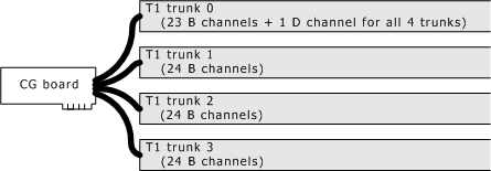 On a T1 trunk, one channel carries signaling for all B channels. This is called the D channel. On T1 trunks, the D channel is typically carried in channel 24. See the following illustration: