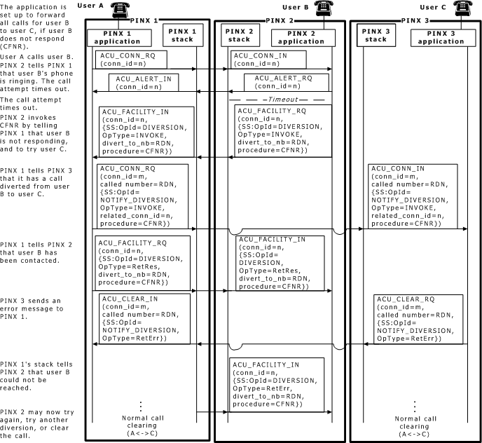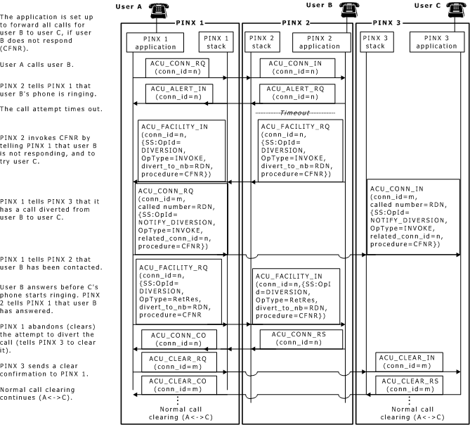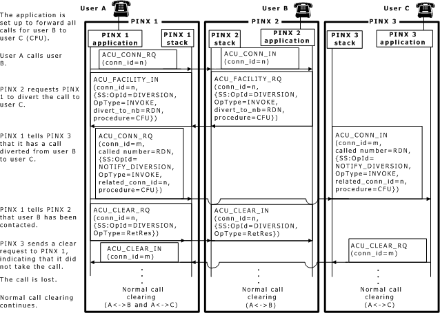 Also, Figures C.1 and C.2 of the ISO/IEC specification have been combined into a single ACU interface because the diversion services are always invoked on the originating node (for example, diversion by forward switching is not supported).