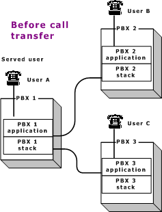 To transfer a call under DPNSS, the application must perform the switching required to connect calls together using standard calls to the Natural Access Switching service. The application also invokes a notify transfer operation to notify each remote party that the transfer took place.