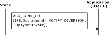 The originating user is notified that a call is forwarded. An ACU indication or confirmation message is sent (such as ACU_CONN_CO, ACU_ALERT_IN, a PROGRESS message, or a FACILITY message) containing an acu_ss_notify_diversion_invoke extended data structure.