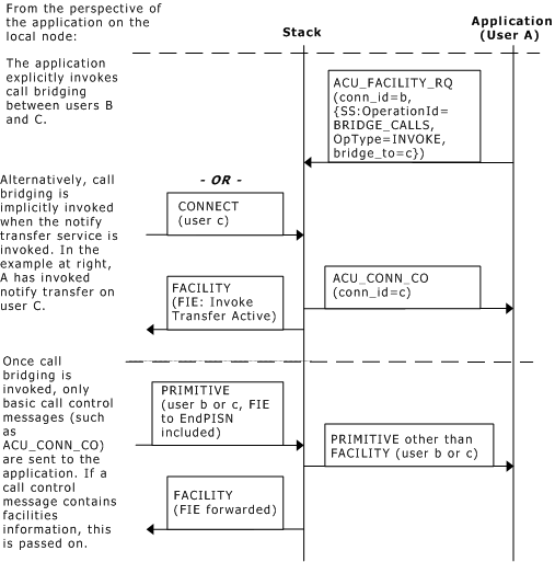 The bridge calls service can also be invoked implicitly when the application performs a transfer-by-join operation (see Call transfer and Q.SIG).