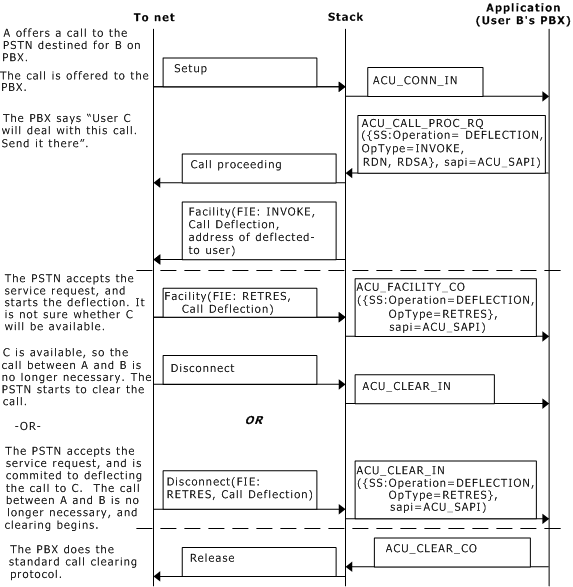 If call deflection is not successfully invoked for the call, the stack returns an ACU indication message to the application containing an acu_ss_deflect_ret_error extended data structure.
