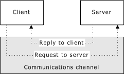 The client makes a request over a communications channel and waits for a reply. The server waits for incoming requests, processes the request, and returns a response. In this model of computing (shown in the following illustration), the server is responsible for coordinating and providing access to a resource on behalf of one or more clients. The resources controlled by a server can be any computing resource such as a database, a physical device, or even another server process.
