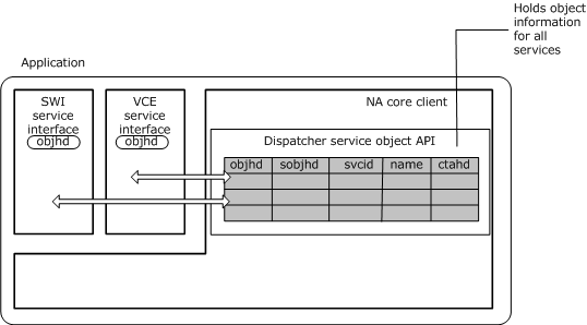 The Natural Access core does not transparently map server-side object handles to client-side object handles on behalf of the services. This is because the Natural Access core has no inherent knowledge of service objects. All knowledge of service objects, and their associated handle(s), is encapsulated within the service itself.