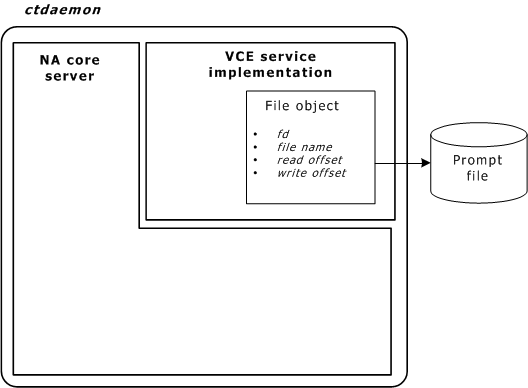 The following illustration depicts the relationship of a file object to both the VCE service and to the associated prompt file.