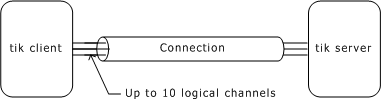 The tik server is multiplexed in that all messages to and from the server contain a field denoting the id of the client.