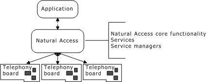 When creating applications with Natural Access, you use Natural Access core functions to set up the operating environment and service functions to access telephony functionality. Natural Access core functions provide a standardized interface for performing tasks such as