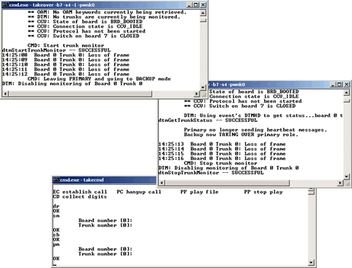 The backup instance can immediately use the object handle from this event to perform dtmGetTrunkStatus. From this call, it learns the board and trunk number associated with the handle passed in DTMEVN_MONITOR_STARTED. The backup instance then adds an entry to its own list of trunks being monitored.