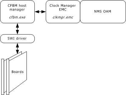 The clock manager service. cfbm.exe is a Natural Access application that is started by clkmgr.emc. It is started as a service under Windows. It is started as a daemon under UNIX. To perform all of its clock management operations, cfbm.exe makes calls to the Natural Access Switching service (SWI). |