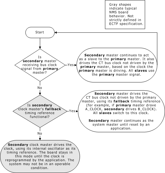 If the primary master stops driving the clock, all slaves attempt to switch over to the other CT bus clock, driven by the secondary master. They continue to use this clock until reset by an application.
