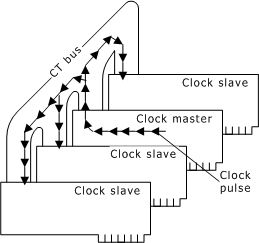 To synchronize data transfer from device to device across the H.100 bus or H.110 bus, devices on the bus must be phase-locked to a high-quality 8 MHz clock and 8 kHz frame pulse. These signals together compose a CT bus clock.