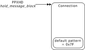 The following illustration shows the creation of the connection, hold_message_block. A default pattern is set and a pointer to the connection is returned.