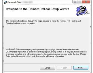The RemoteRtfTool utility is provided with the PowerMedia XMS and is accessed through the Downloads > Tools page from the Console and double-click RemoteRtfToolInstaller.msi.