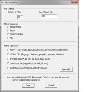 Click Configure to configure the categories to trace for both Native and MSML modes.