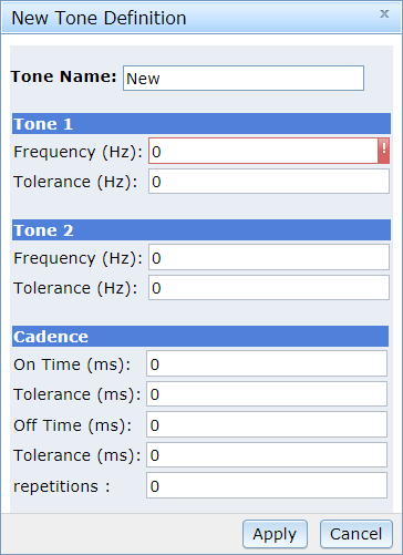 On the Basic Tone Definitions page, click Add. The following dialog box appears: