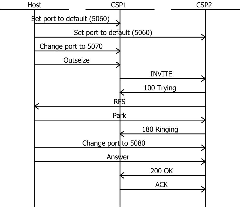 • As soon as the host changes the port number, the CSP expects inbound SIP traffic in the new port. All outbound SIP traffic hereafter contains the new port number in the Contact Header.