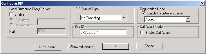 The Configure SIP dialog box opens. See the screen shot on the next page.