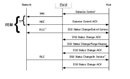 1. The Outseize Control message generates outgoing IAM to the network. Front End Machine FEM Outseize ACK Timer is initiated (29 seconds). T7 is initiated upon sending of the IAM.