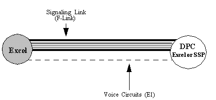 Associated Mode Signaling, shown in the next figure, is the typical international (ITU-TS) architecture. Voice circuits between the CSP and the destination point code (DPC) are connected over T1, E1 or J1 carriers. SS7 signaling between the CSP and the DPC is over a signaling link directly connecting the platform to the SP/SSP. There can be multiple signaling links between an CSP and an SP.