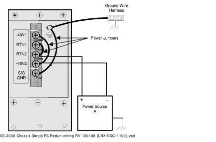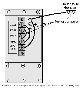 Do not daisy-chain two or more chassis. Do not wire chassis directly to other equipment or to a common bus bar. Most feeders from the -48 V to frames are limited to about 20 A, whereas load distributions support several hundred amperes. Direct wiring to the fused power source eliminates the coupling mechanism, which appears as impedance in the power distribution system. If impedance is not controlled, transient voltages will cause temporary or permanent malfunctions.
